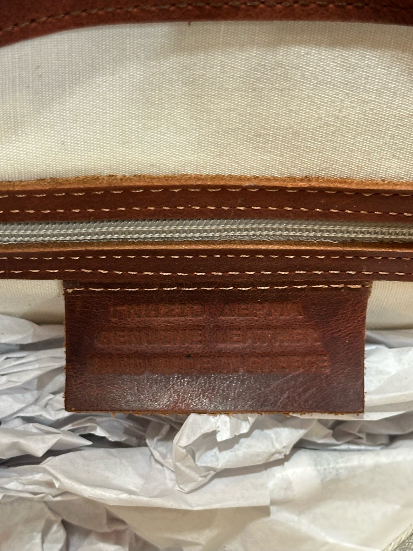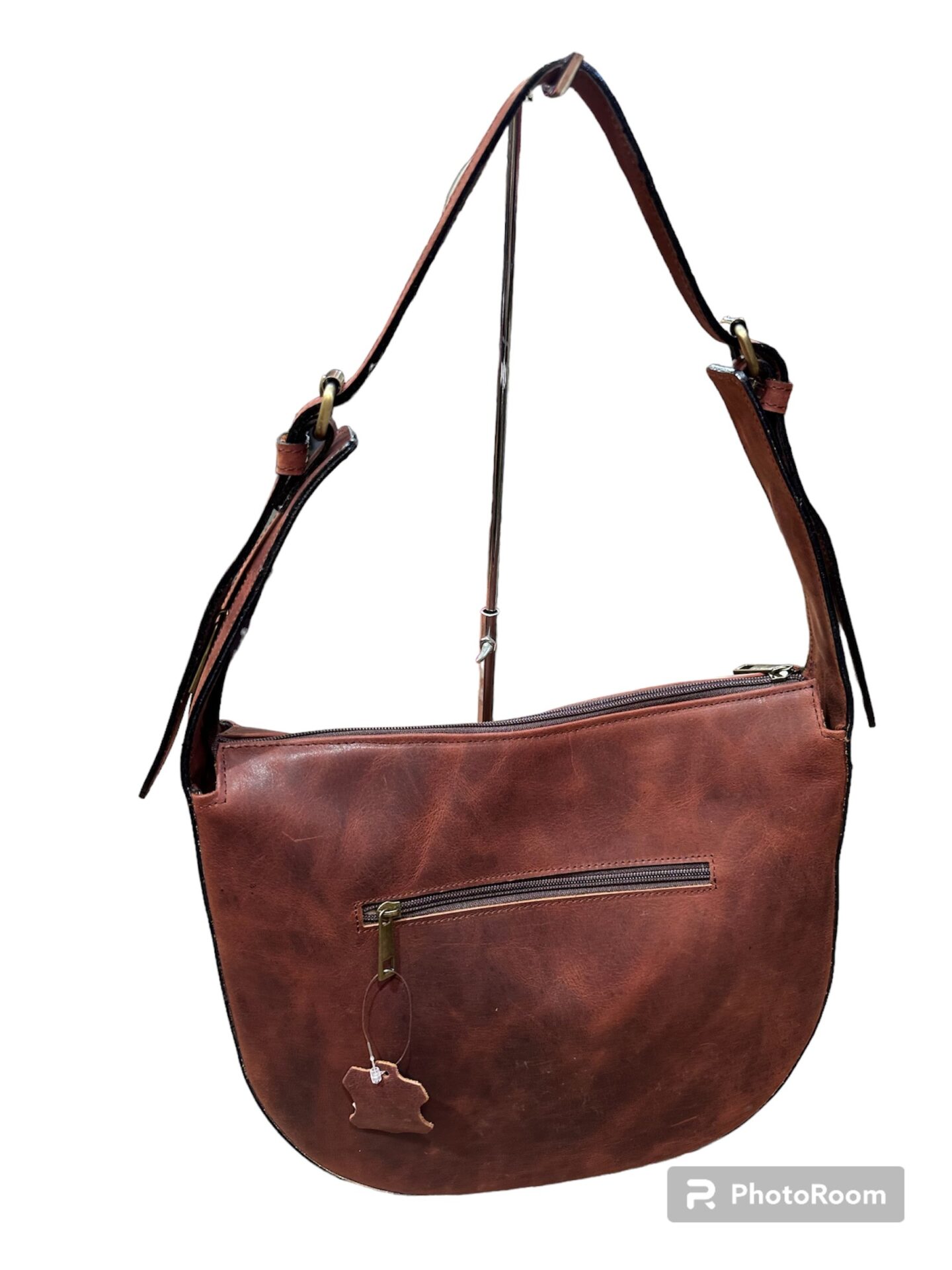 Δερμάτινη γυναικεία τσάντα χειροποίητη Ελληνικής κατασκευής από δέρμα μοσχαριού. Το λουρί της αυξομειώνεται. Στο εσωτερικό της διαθέτει επένδυση από καραβόπανο ενώ υπάρχει και χώρισμα ώστε να μπορείτε να τακτοποιείτε τα πράγματά σας. Στη πίσω μεριά έχει μια θήκη για το κινητό τηλέφωνο όπως και στο πλάι. Θα σας βγάλει ασπροπρόσωπες σε κάθε περίσταση. Μπορεί να δεχτεί και ένα φορητό υπολογιστή ή tablet 14′.